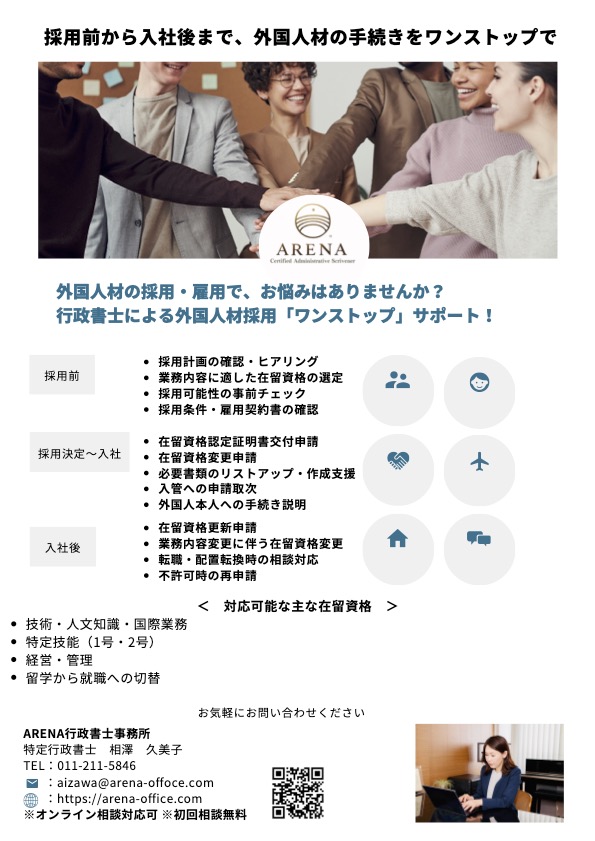 アリーナ行政書士事務所は、中小企業や個人事業主のビジネス支援を専門とする行政書士事務所です。